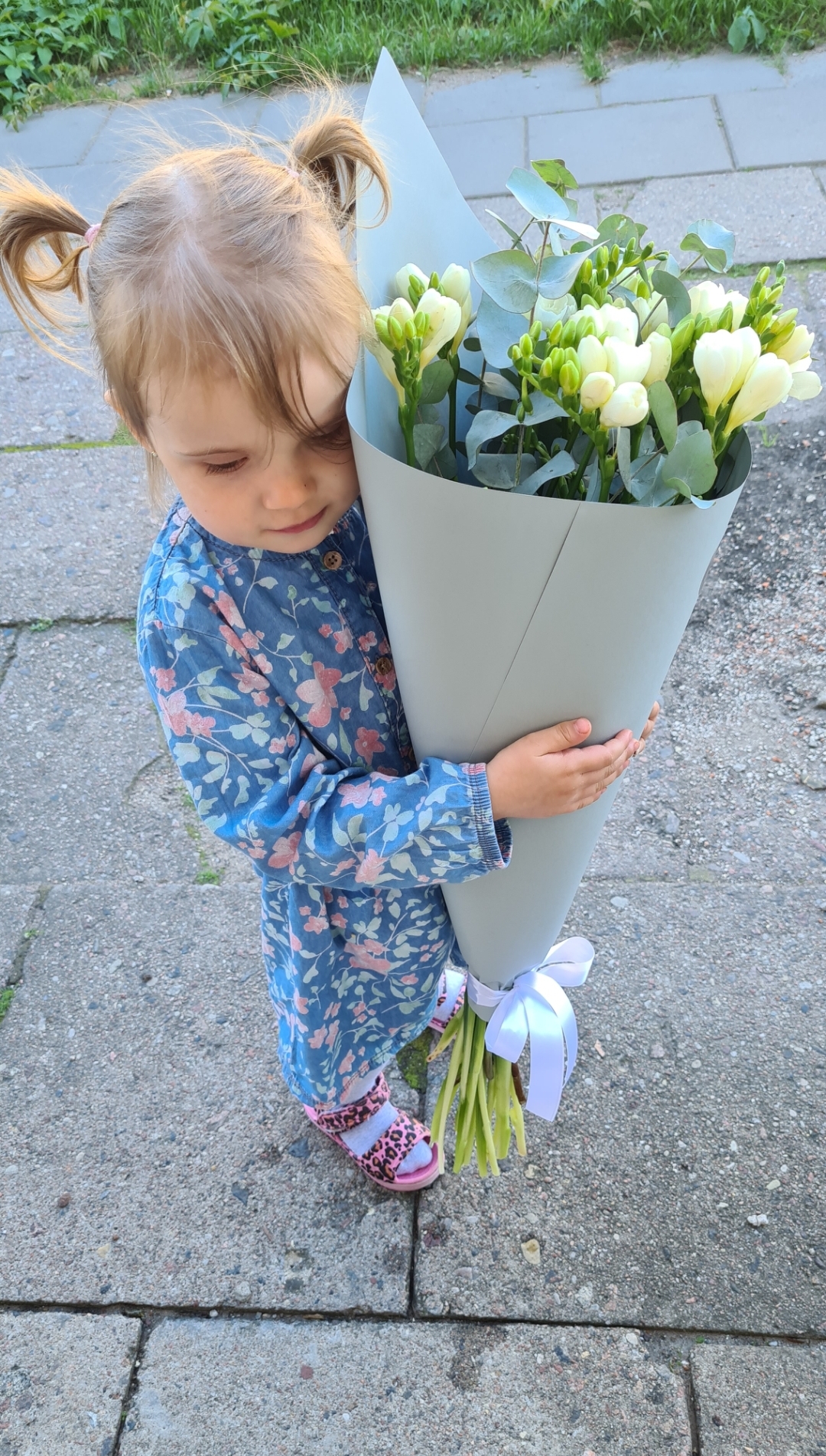 komentaruose galite pažymėti ar norite baltų ar spalvotų frezijų.